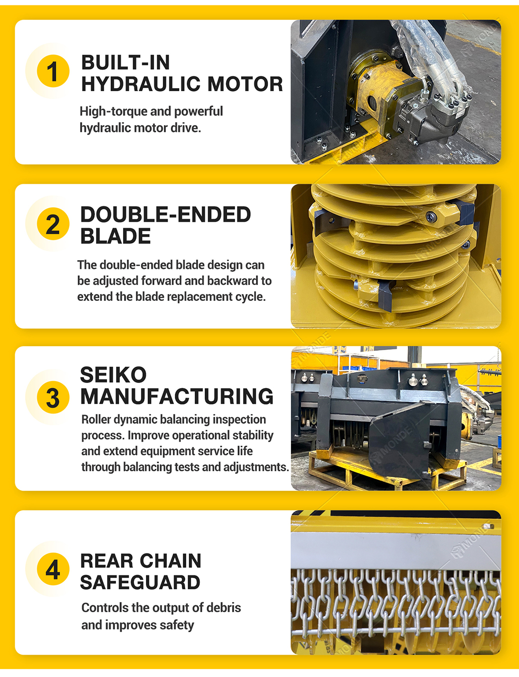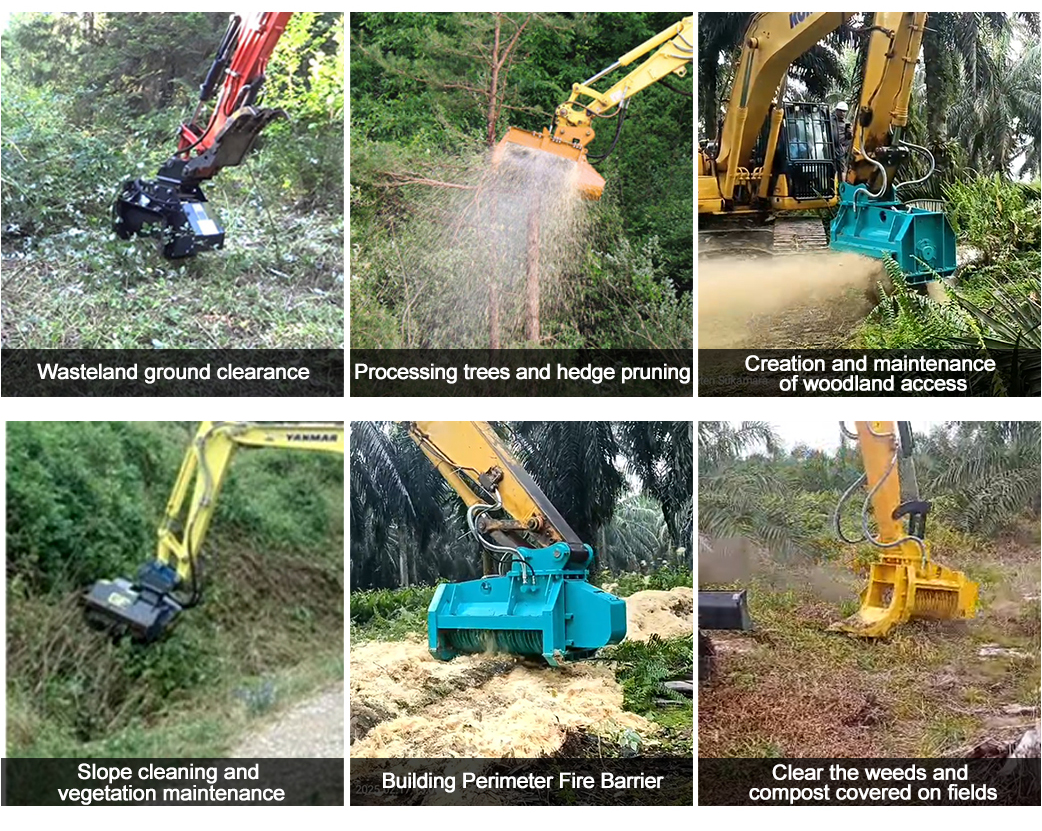 Excavator Mulcher is a tool installed on the excavator that can crush wood, which is convenient for forestry, forest open belt, smashing wood is convenient and fast.